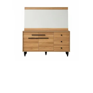در بخش فوقانی میز، طبقات کاربردی برای قرار دادن کتاب، لوازم دکوری و وسایل شخصی در نظر گرفته شده است. همچنین، چهار کشوی جادار در بخش زیرین سمت چپ امکان نظمدهی کامل به اسناد، لوازمالتحریر و تجهیزات جانبی را فراهم میکنند. سطح عریض و یکدست میز فضای مناسبی برای کار با لپتاپ، مطالعه و طراحی در اختیار شما قرار میدهد.