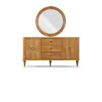 ویژگیها: دارای دو قسمت جانبی با دربهای برجسته و دایرهای شکل که برای نظمدهی به اشیاء کوچک یا استفاده به عنوان فضای ذخیرهسازی مناسب است. در وسط، سه کشو برای مرتب نگه داشتن وسایل قرار دارد.